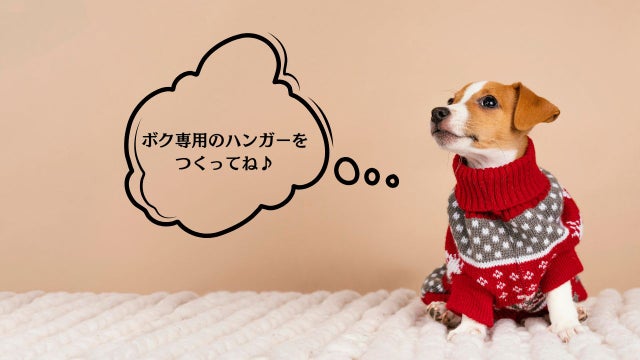 彼女も世の愛犬家の方々とおなじように、愛犬の安全と愛犬とのおしゃれを楽しむべく、彼専用のお洋服をそろえてきたものの、既製品のハンガーの使い勝手の悪さには常にストレスを感じ、探せど探せど彼女がイメージするハンガーは見つからなかったのです。