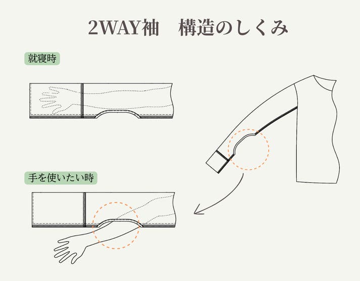 - 夜中の"ひっかき"を防ぐために工夫された袖口構造