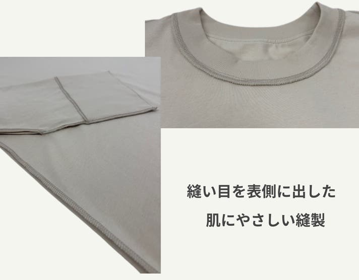 着た時に縫い目が肌に当たらないよう、縫い目を表側にしてあります