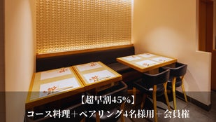 【超早割45%】コース料理+ペアリング4名様用+会員権