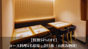 【特割34%OFF】コース料理4名様用+会員権(お飲み物別)
