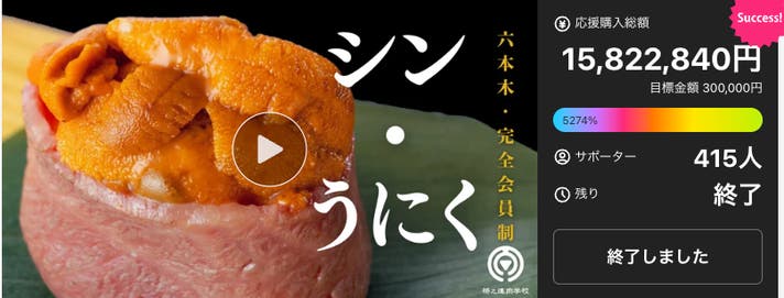 昨年、1,500万円以上を応援購入を集めた格之進が