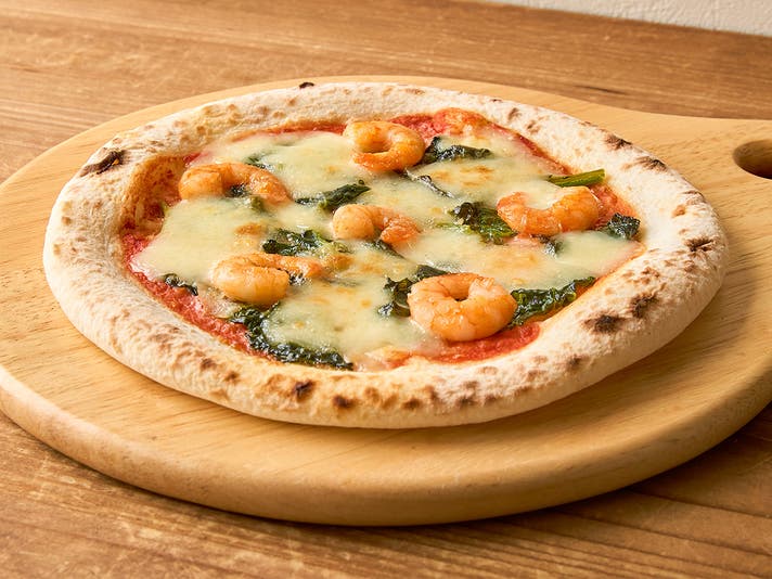 原材料:小麦粉(イタリア製造、国内製造),モッツァレラチーズ、ナチュラルチーズ(卵白リゾチーム(卵由来),ケール、エビ、トマトソース(トマト、トマトジュース漬け)、アンチョビ、食塩、ドライイースト、オリーブオイル (一部に小麦、乳成分を含む)