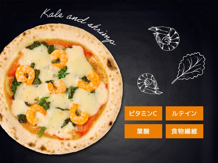 そして、ついに完成したのが―― 「ケールとエビのピザ」です。