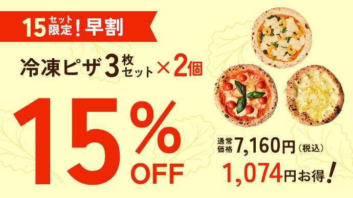 15セット限定!早割 ピザ3枚セット×2 15%OFF