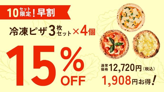 10セット限定!早割 ピザ3枚セット×4 15%OFF