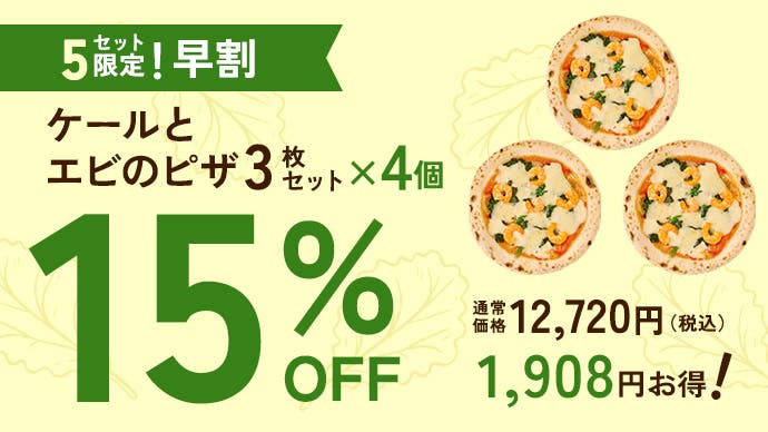 15セット限定!早割 「ケールとエビのピザ」3枚セット 15%OFF