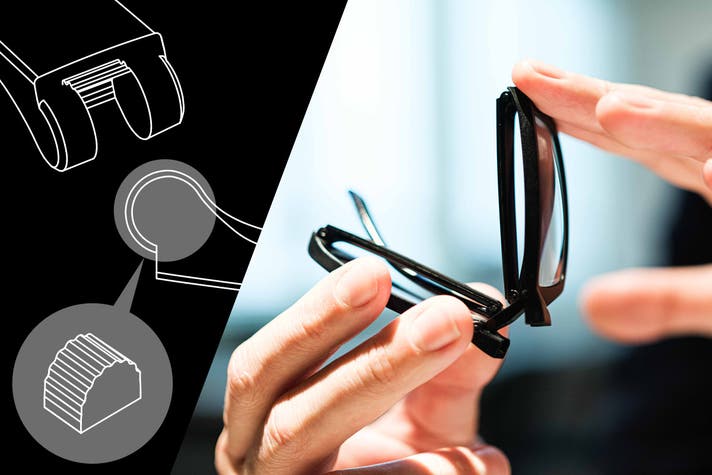 折りたたみメガネの常識を覆す!ギア形状の結合部分