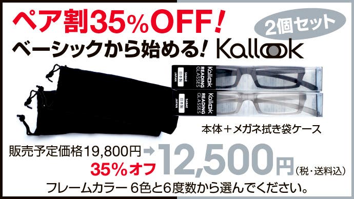 【超早割60個限定】 ベーシックKALLOOKから始めるリラックスメガネ!