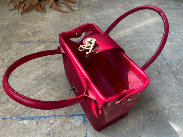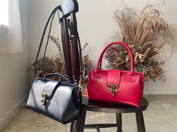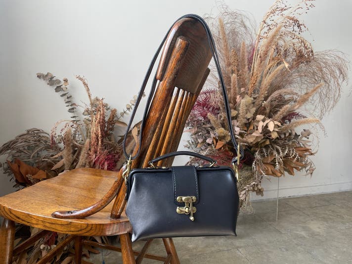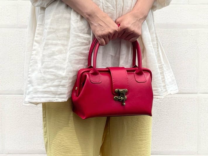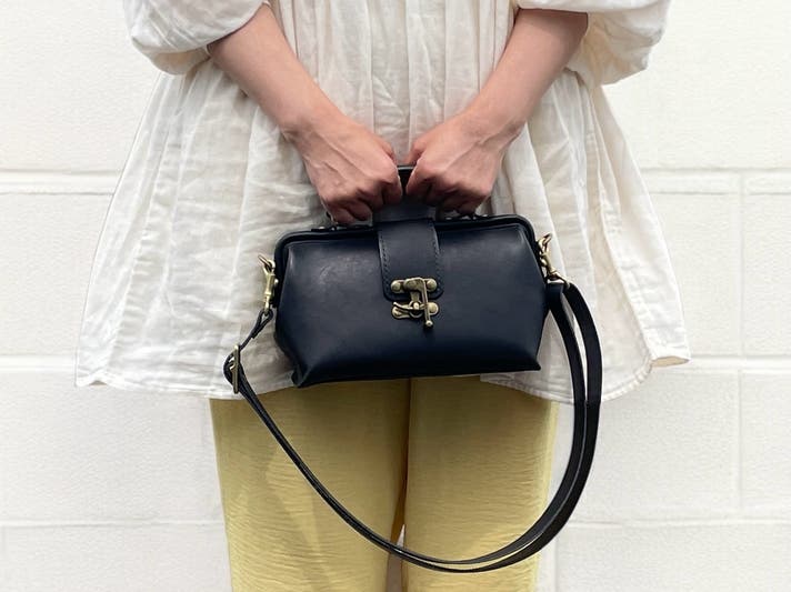 ハンドバッグとしてお持ち頂く際はショルダーストラップを取り外して頂いていても結構ですが、デザイン的に邪魔になるようなものではありませんのでショルダーストラップを付けたままハンドバッグとしてお持ち頂いても雰囲気のあるスタイルになるかと思います。