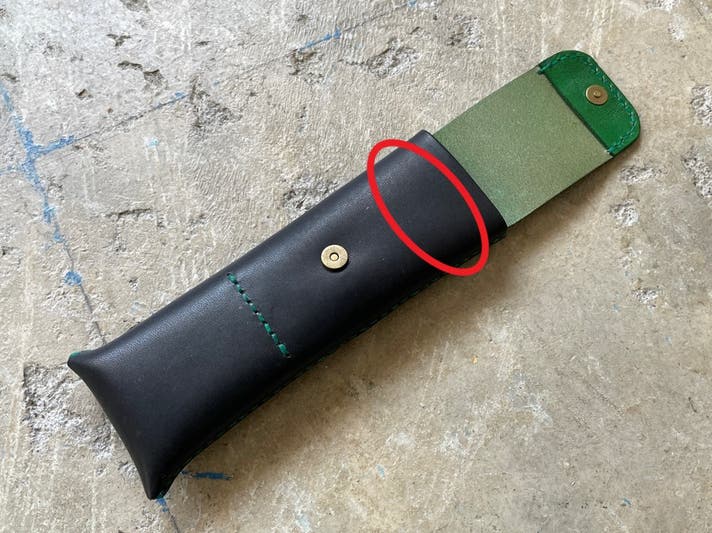 ふたの部分を本体内側に縫い付けており、引っ張ることでペンを下から押し上げてくれます。
