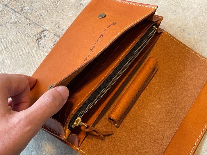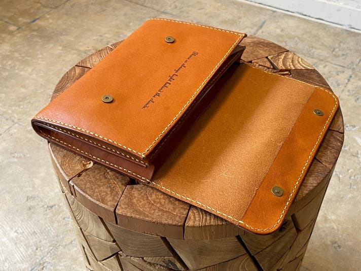 植物性タンニンでしっかりと鞣した後、しなやかさと耐久性をあげる為にオイルを含ませています。