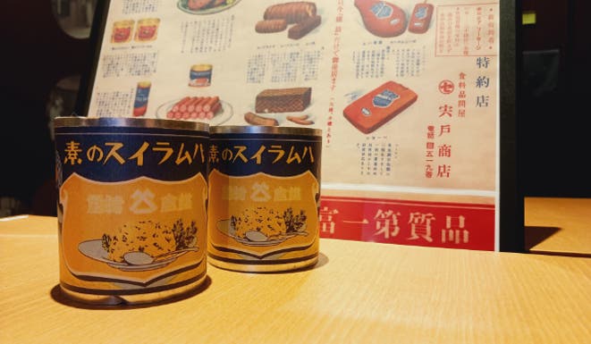 今回のプロジェクトでは、当時の缶詰のデザインをイメージした、オリジナル缶を数量限定で作成しました。ハムライスの素はこのオリジナル缶に詰めた状態で皆様の元にお届けします。