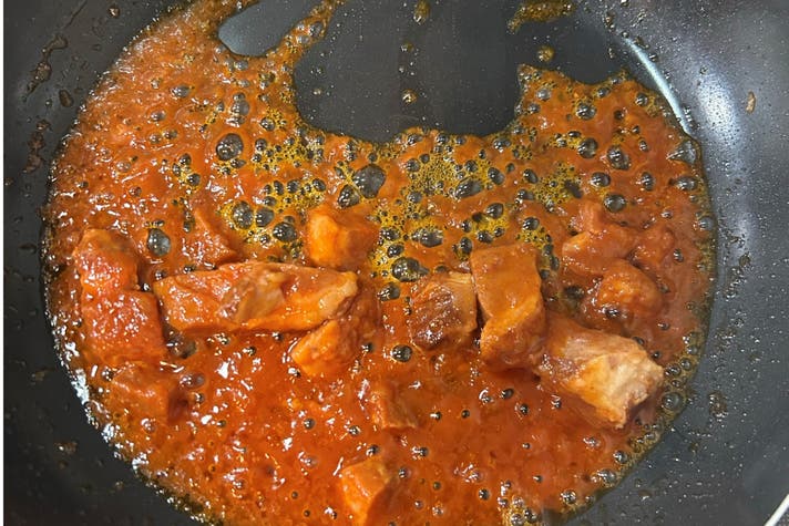 ③焦がさないように混ぜながら、2/3量になるまで煮詰める。
