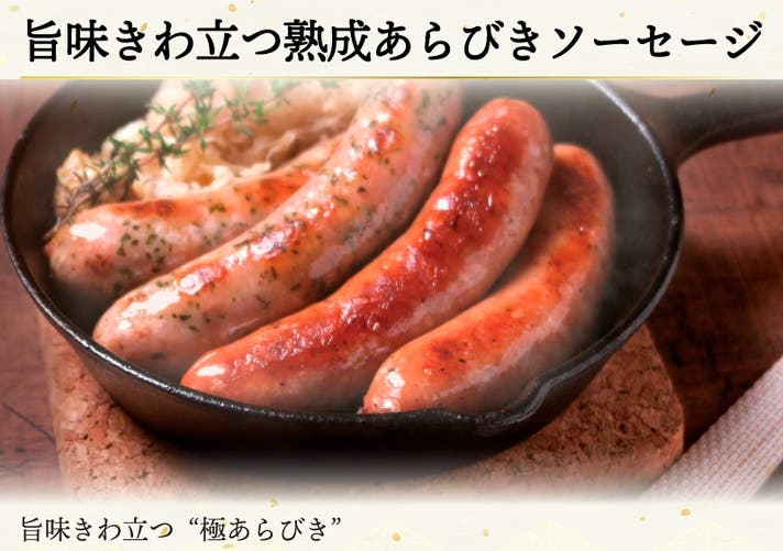 挽き目の大きいあらびきにした豚肉を3日間以上熟成させたソーセージ。あらびき感を最大限に味わえる太めの天然羊腸を使用しています。