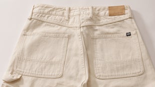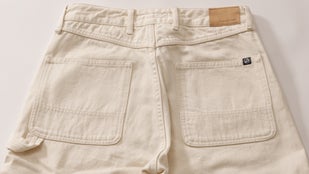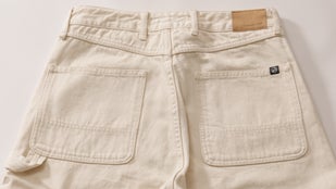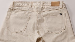 ポケットはスラッシュポケットにし、ベルト裏とヨーク裏をヘリンボンスレキにすることで、トラウザー的なデザインで大人なカジュアル感を演出。