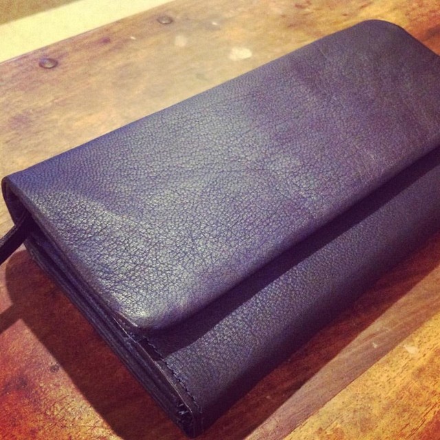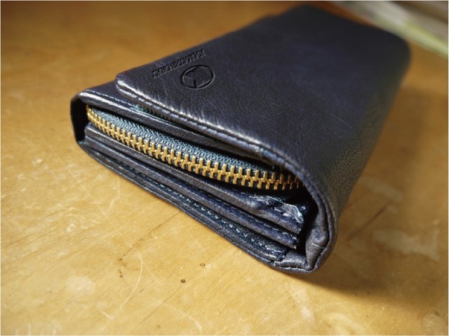 有名スポーツ選手のグローブや、世界的なブランドの革を開発した工場の技術を使い、ようやく、革のインディゴ染めに成功。これまでにない、長く使って、インディゴの経年変化を楽しむ、そんなロングウォレットを中心とする、革小物のブランドをスタートします。