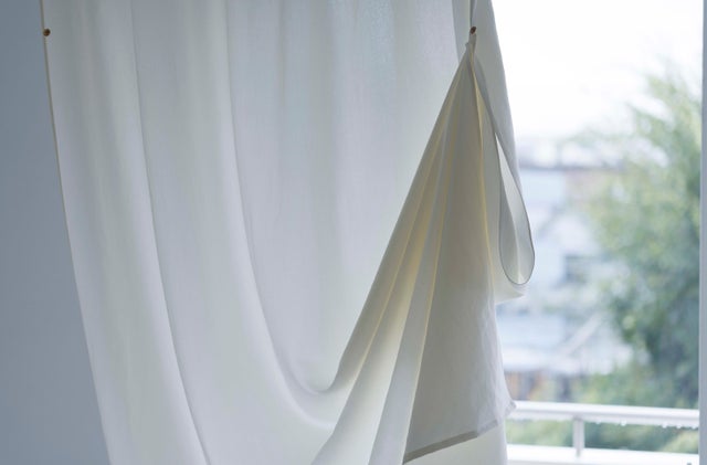 カーテンのように窓辺に吊れば、外と家の中を、部屋の中に吊れば空間と空間を、それぞれあいまいに、不完全に仕切り、季節のうつろいや住む人の気配を静かに映しとります。