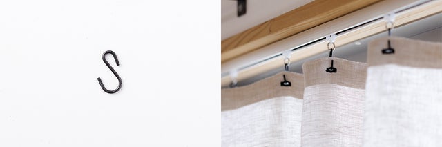 通常のカーテンに付属されているプラスチックフックは付いていません。