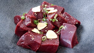 カミチクが誇る衛生管理体制だから実現できる鮮度の高いホルモン。中でも非常に人気な『国産牛レバー』をなんとチルドでお届け!