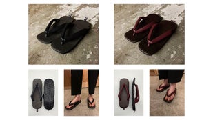 - 手漉き和紙を使い、柿渋染めなど古来の手法で染め上げた和紙でできた、一つ一つ手作業の雪駄