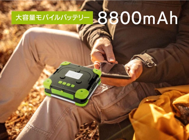 - モバイルバッテリー機能を付属。8800mAhの大容量バッテリー搭載。いつでもどこでも充電可能!