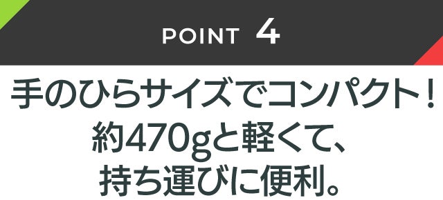 バッテリー残量も、4段階のLEDインディケーターで簡単に確認が出来ます。