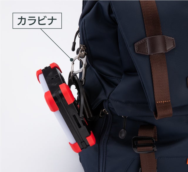 ヒッチハイクや登山などバックパックのショルダーストラップなどに取り付ければ、【KAMMI】を手に持たずとも進行方向に向けて真っすぐライトを照射出来ます。