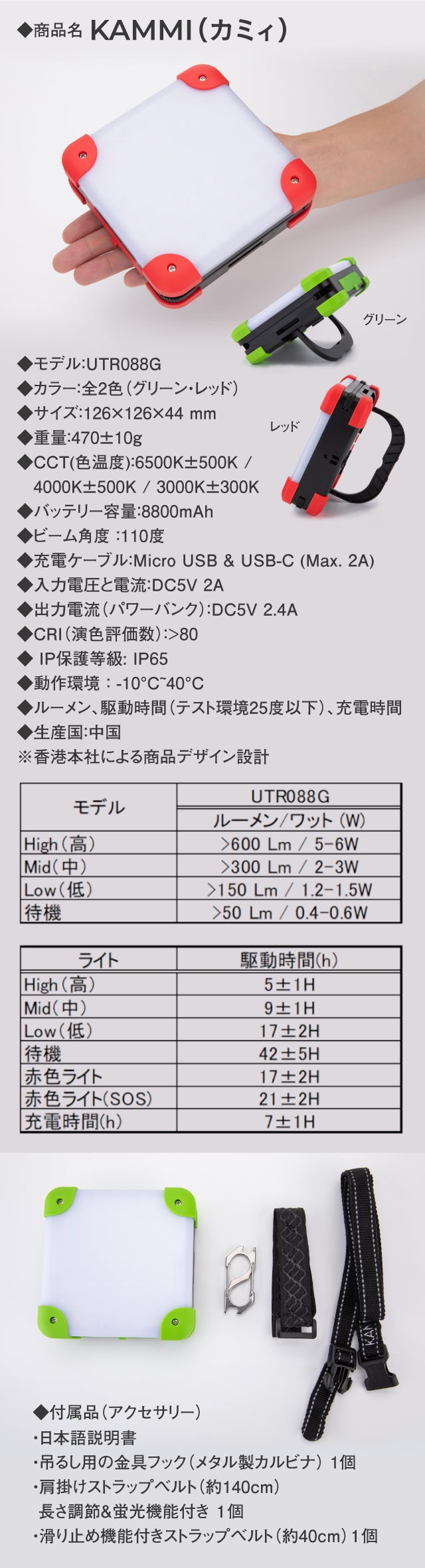 多目的で自由に使える【KAMMI】だから、大事な「明かり」と「電気(バッテリー)」を身の回りに確保が出来るので、安全、安心です!