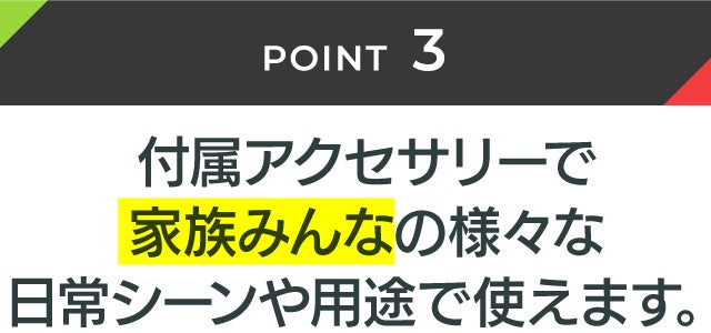 充電用モバイルバッテリーとして、家族みんなの生活の中で幅広く活躍が出来ます!