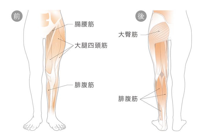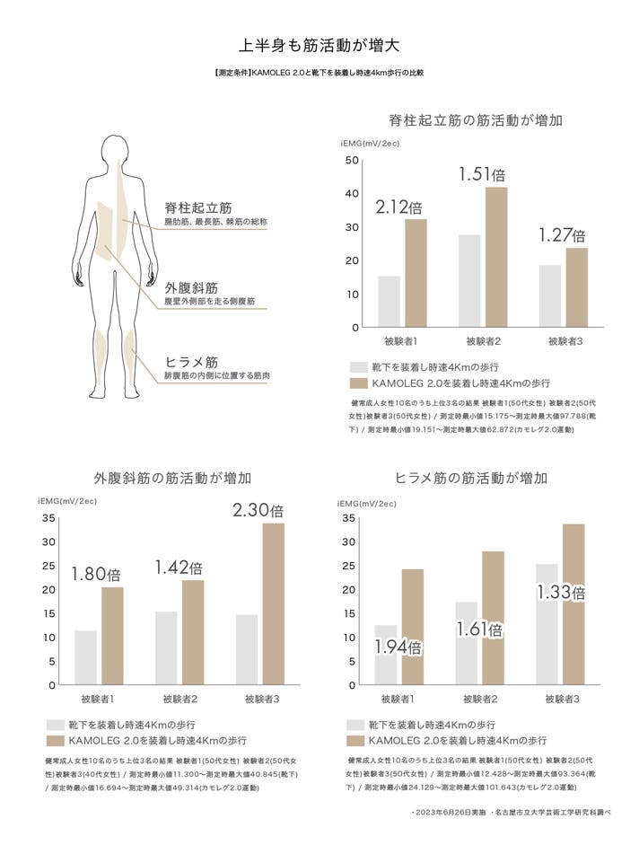 &MEDICALが着目したのは、「ふくらはぎ(腓腹筋)」「太もも(大腿四頭筋)」「足を振り上げるインナーマッスル(腸腰筋)」「お尻(大臀筋)」の4つの筋肉。歩くたびにこれらの下半身の筋肉を伸ばして鍛えることが出来ます。