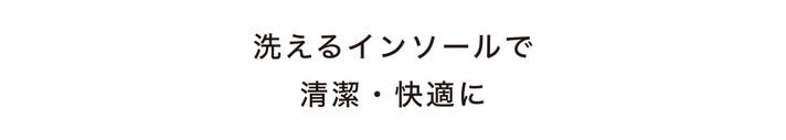 付属のクッションインソールは取り外しができ、手洗い洗濯が可能です。抗菌・防臭効果があるため、足のムレやにおいが気になる方でも、いつでも清潔・快適にお使いいただけます。