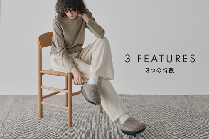 KAMOLEG 2.0の歩きやすさはそのままに、アッパーにKAMOLEGシリーズ初となるふわふわモコモコのボア素材を採用しました。足元の冷える日も、あったかボア素材が可愛く包み込んでくれます。室内での歩きを、ここちよく、あたたかく。