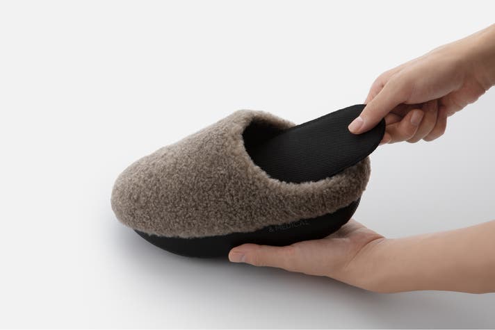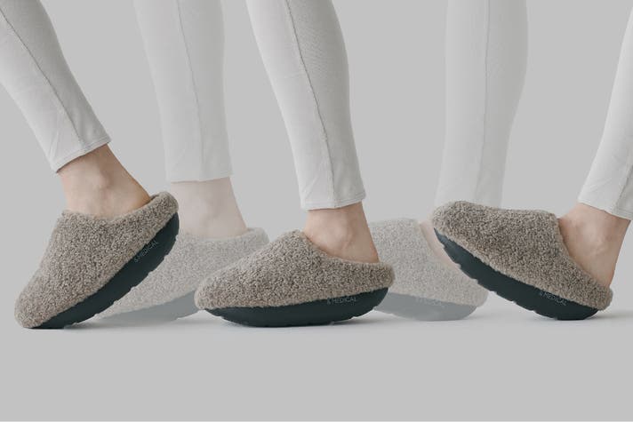 &MEDICAL(アンドメディカル)の『KAMOLEG 2.0(カモレグ 2.0)』は、底面が丸くカーブしたアウトソールと、足裏アーチをサポートするインソール構造で、履くだけで毎日の歩きがフィットネスに変わるルームシューズです。