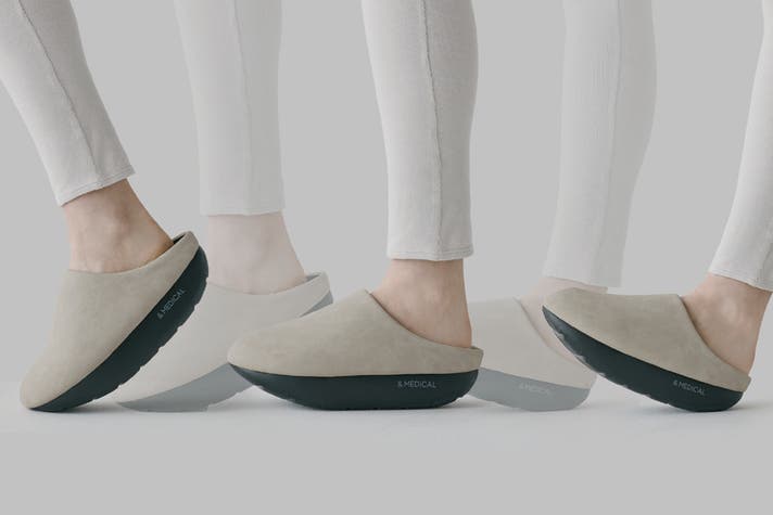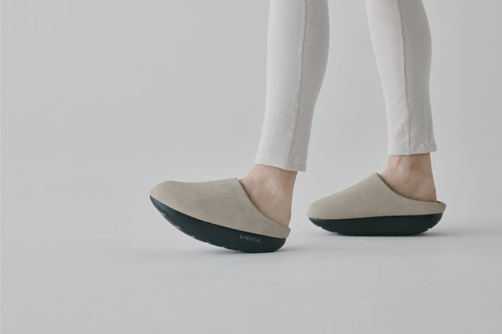 &MEDICAL(アンドメディカル)の『KAMOLEG 2.0(カモレグ 2.0)』は、底面が丸くカーブしたアウトソールと、足裏アーチをサポートするインソール構造。履いて歩くだけで毎日の歩きがフィットネスに変わるルームシューズです。