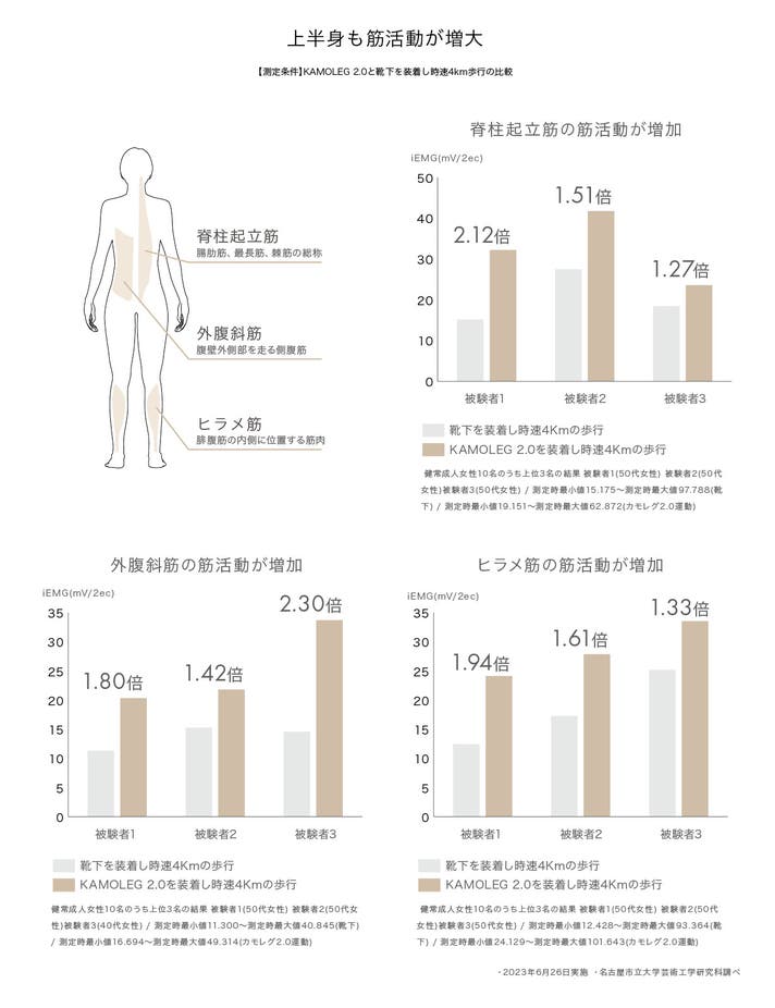 &MEDICALが着目したのは、「ふくらはぎ(腓腹筋)」「太もも(大腿四頭筋)」「足を振り上げるインナーマッスル(腸腰筋)」「お尻(大臀筋)」の4つの筋肉。歩くたびにこれらの下半身の筋肉を伸ばして鍛えることで、健康的な美脚を目指せます。