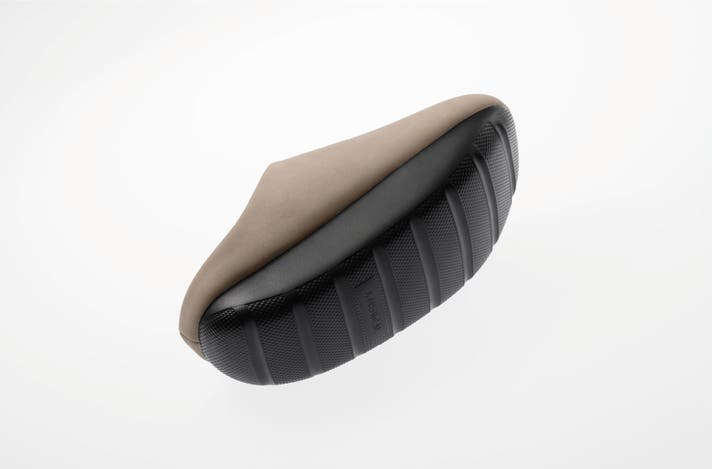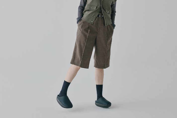 アッパーのカラーは、オフィスカジュアルに合わせやすいSAND BEIGE(サンドベージュ)とBLACK NAVY(ブラックネイビー)の2色展開。ヴィーガンレザーの滑らかな質感とマットなブラックソールのコントラストが、従来のオフィスサンダルとは異なるビジネスの品格を与えてくれます。