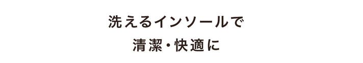 付属のクッションインソールは取り外しができ、手洗い洗濯が可能です。抗菌・防臭効果があるため、足のムレやにおいが気になる方でも、いつでも清潔・快適にお使いいただけます。