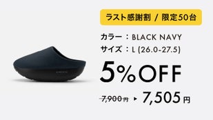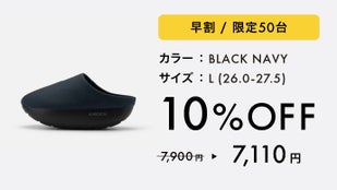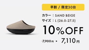 アッパーのカラーは、オフィスカジュアルに合わせやすいSAND BEIGE(サンドベージュ)とBLACK NAVY(ブラックネイビー)の2色展開。ヴィーガンレザーの滑らかな質感とマットなブラックソールのコントラストが、従来のオフィスサンダルとは異なるビジネスの品格を与えてくれます。