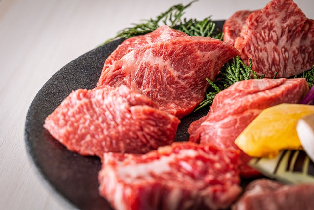 当店が着目した漢方和牛は、黒毛に比べて赤身が多く、脂肪分がほどよい「あか牛」であるため、脂身と赤身のバランスがちょうどよいのが特徴。