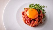 店内で粗挽きにしたミンチ肉を使ってハンバーグを作り、強火で全体にざっと火入れ。