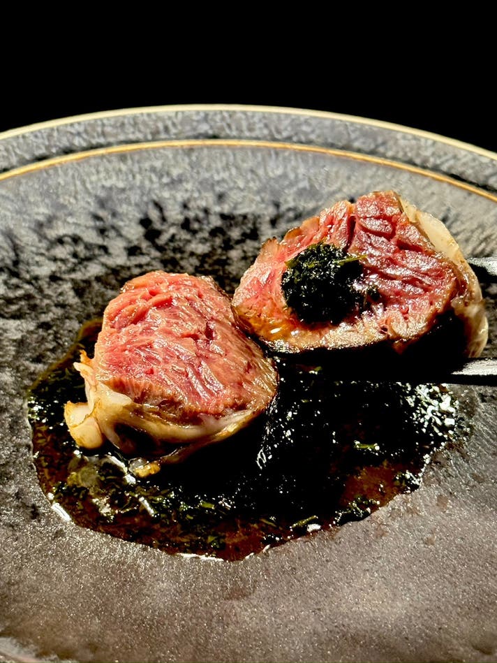 ハラミのお茶(網油で巻いたハラミ×お茶ソース)