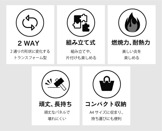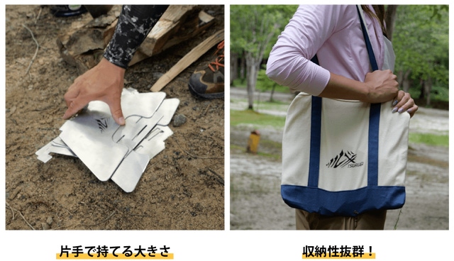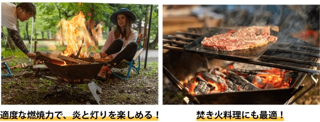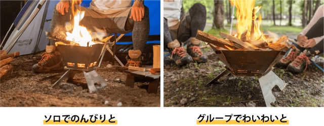 - 2通りに変形できるトランスフォーム型。様々なシチュエーションで理想の焚き火を楽しめます。