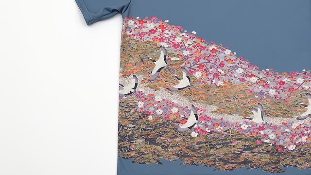 「着物 Tシャツ」とインターネットで検索をすると、たくさんの和柄風のTシャツがヒットします。ところが、それらはPC上のデザインソフトで“和風”にデザインしプリントされているものがほとんどです。また、日本人が企画をしていたとしても、アジアの工場で大量生産しているものが多くを占めます。それでも、日本で検品をするため「Made in JAPAN」という記載になっている商品もあるのです。今回制作するTシャツは、“着物風”でも“和風”でもなく、本物の着物の絵柄をそのままTシャツに写し出し、生産まで日本で完結することで、正真正銘の「Made in JAPAN」のTシャツを制作しました。Tシャツを通して「着物を着る」和装体験をしていただくことを目指します。