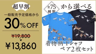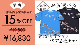 【早割】お好きな着物柄×日本の伝統色Tシャツ ペア2枚セット
