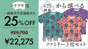 【マクアケ割】お好きな着物柄×日本の伝統色Tシャツ ファミリー3枚セット