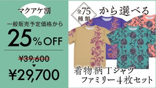 【マクアケ割】お好きな着物柄×日本の伝統色Tシャツ ファミリー4枚セット