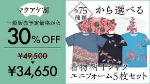 【マクアケ割】お好きな着物柄×日本の伝統色Tシャツ ユニフォーム5枚セット
