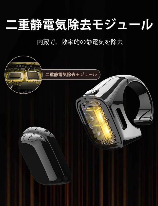 このリングの内蔵されたダブル層の静電気除去モジュールは、静電気を効果的に放電できます。さらに、摩擦や接触から生じる静電気を自動で消去する全自動モードと、手動で静電気を放電できるインディケーター付きのモードを搭載しています。