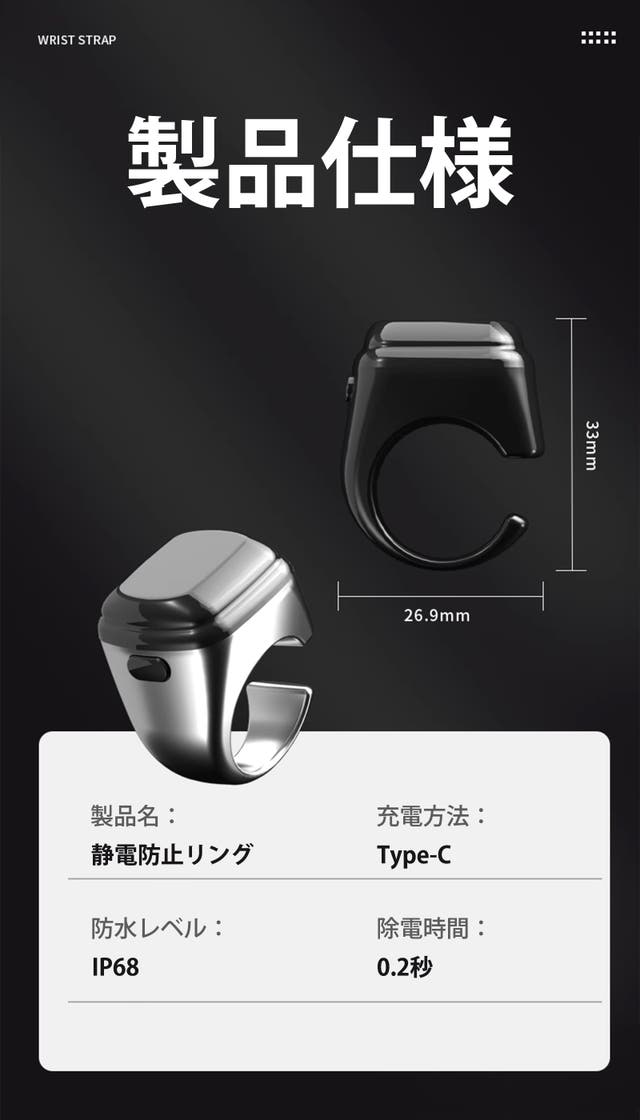 - 指輪をつけるだけで静電気を効果的に放電、静電気除去はもう楽々!